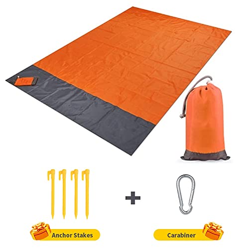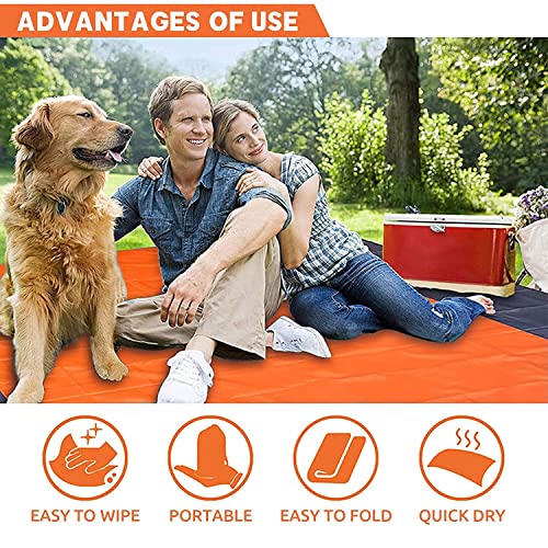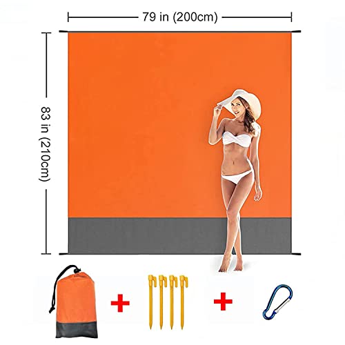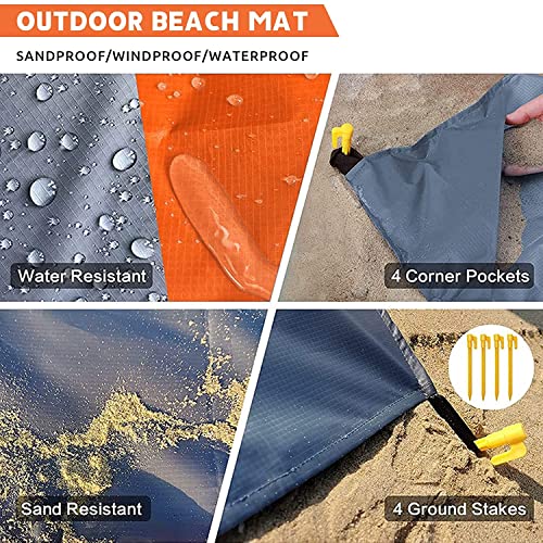 Sandproof Beach Blanket 79 X 83 Inch Emergency Beach Blanket Oversized Fits for 4-7 Adults, Large Waterproof Beach Mat, Lightweight Outdoor Picnic Mat for Travel, Camping, Hiking, Outdoor (Blue Beach Mat) (Orange Beach Mat)