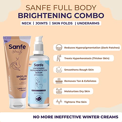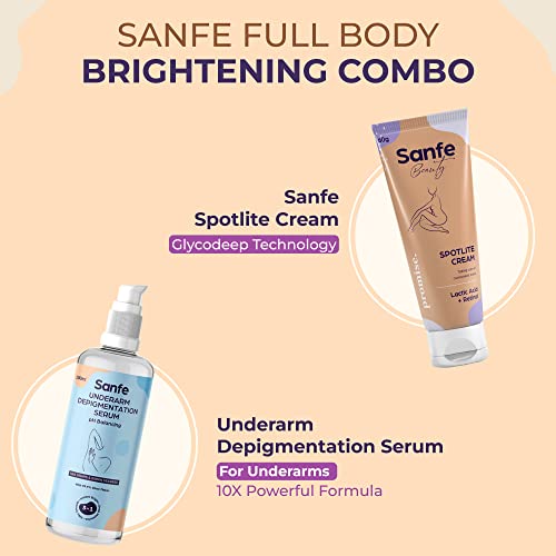 Sanfe Full Body Lightening Combo | For Dark Neck, Joints, Skin folds & Underarms, | 2 Step Body Care Routine for women – Glo Cream and Depigmentation Serum