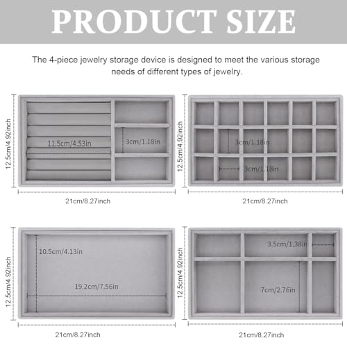 SANNIDHI® 4pcs Set Stackable Jewelry Organizer Box Tray, Earrings Necklaces Jewellery Organizer, Drawer Inserts Container Display Case for Necklace Bracelet Ring Brooch