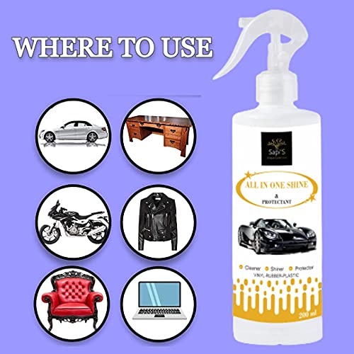 Sapi’S All in One Shine & Protectant Liquid Body Polish to Shine and Protect Vinyl, Rubber and Plastic – 200 ml Car/Bike Care/Car Accessories/Automotive Products, Suitable for All Surfaces