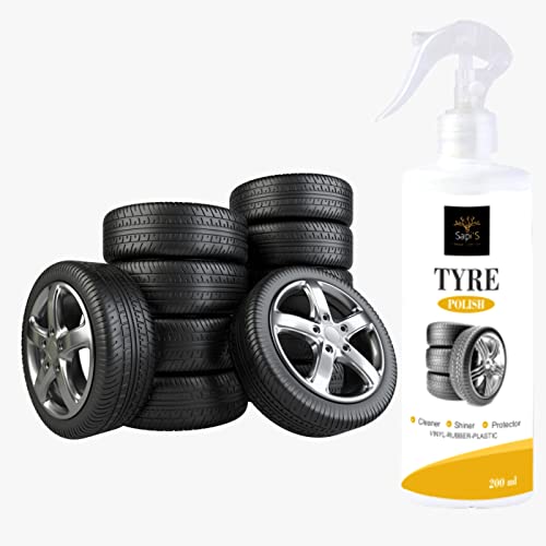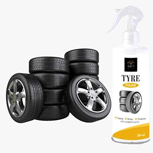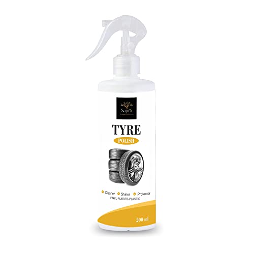 SAPI’S Tyre Polish to Shine Black Look, Zero dust Attraction & Spotless Car Care/Car Accessories/Automotive Products, Matte Black Tyre Dressing Spray, Natural Biodegradable 200 ml