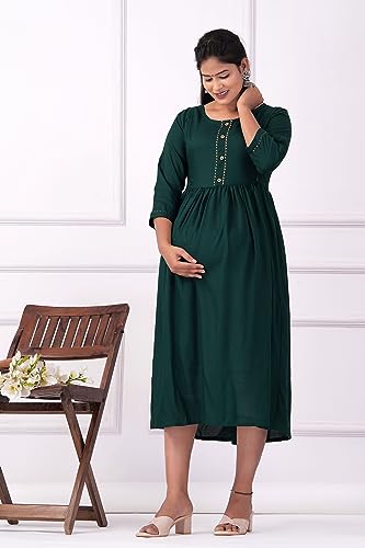 SAPNA Collection Women’s Rayon Anarkali Maternity Dress Feeding Kurtis for Women with Concealed Nursing Zip for Breast Feeding & Pregnancy