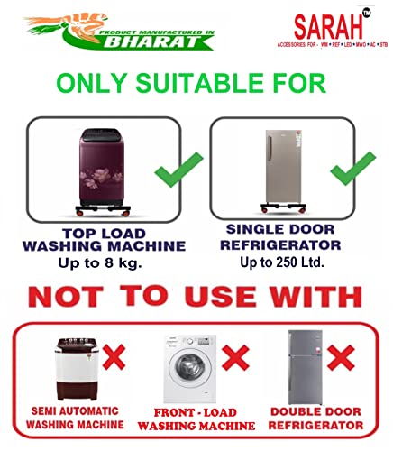 The trolley is compatible with fully automatic top loading washing machines & refrigerators of major brands like LG, Samsung, Godrej, Whirlpool, etc.