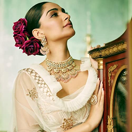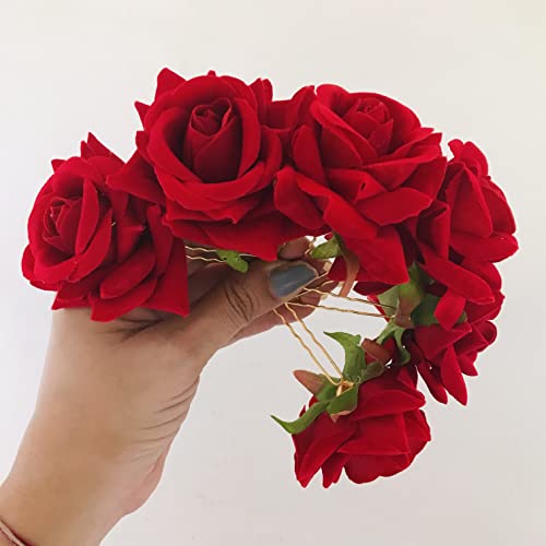 Sattyaki Premium Handmade 6 Rose Flower Hair Accessories Bridal Hair Clip Set/Hair pin/Juda pin/Juda bun/Side pin for Women, Girls.