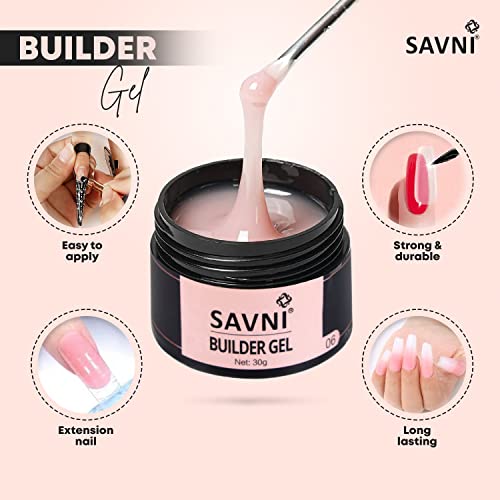 Savni Builder Gel Soft Gel UV/LED for Nail Extension Nail Art Manicure Set 30g (Light Pink)
