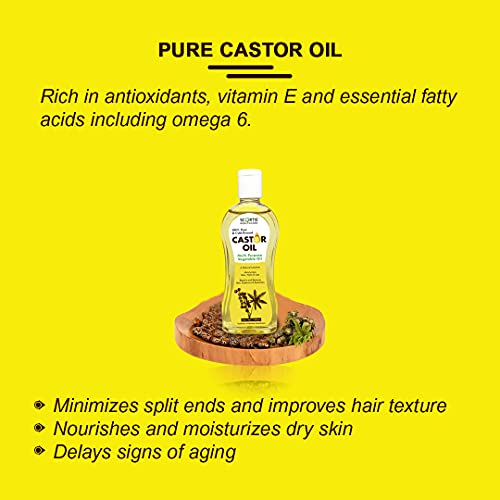 Use castor oil as a deeply hydrating moisturizer to help minimize scars and stretch marks, reduce the look of fine lines and wrinkles, and moisturize dry hands and heels; Used as a nail oil, it strengthens brittle nails and promotes nail growth.