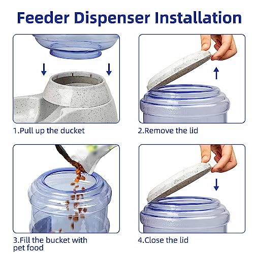 ▶ Easy to Use and Clean: The Auto Food Dispenser can be removed directly from the non-slip base, filled with food, and then fixed to the base