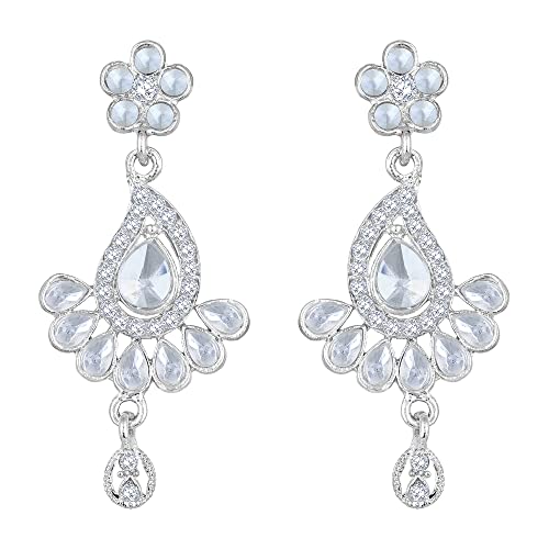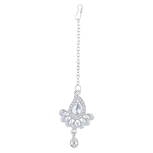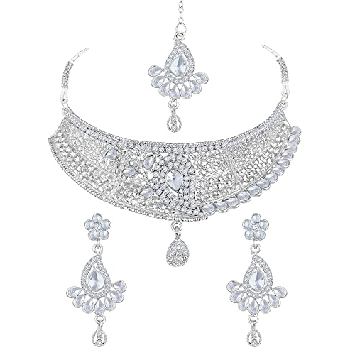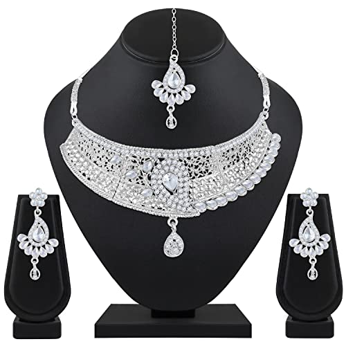 Shining diva presents this latest american diamond silver plated jewellery set stylish necklace set for women. This casual, festival or wedding party wear necklace set for women with maang tikka and earrings is made of fine quality material which looks stylish and goes perfect with any attire. This traditional choker necklace set is perfectly suited for wedding or party wear. Shining diva is a well known brand across fashion jewellery sector. shining diva has huge collection of latest statement haram necklace jewellery, traditional necklace set, south indian type Lakshmi temple pendant set and other jewellery accessories which includes fancy bangles for women, wedding bangles, ear cuffs, traditional bangles kada, neck choker, fashion party wear necklace for girls and jhumki jhumka earrings. shining diva is pioneer of imitation jewellery and design pearl necklace set for women and american diamond hangings party wear stylish earrings. shining diva fashion and traditional jewellery give true value for your money. buy shining diva trendy artificial jewellery from amazon in offer. these are also ideal for special birthday gifts for girls, wife, love valentine gifts for girlfriend, wedding gifts and anniversary gifts.