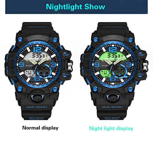 Shocknshop Analog Outdoor Sports Digital Dial Watch for Men Boys (Blue Dial and Strap) -W07BLU