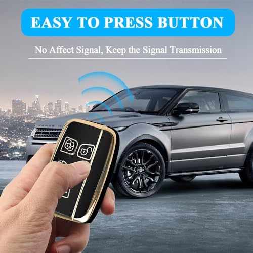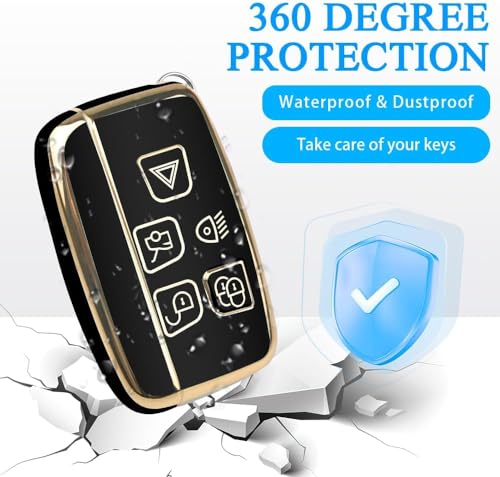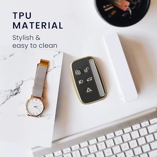 SHOPOFLUX TPU Car Key Cover Compatible for Jaguar & Range Rover Evoque Velar Discovery LR4 Land Rover Sport XF XJ XE F-PACE F-Type 5 Button Smart Key – Black