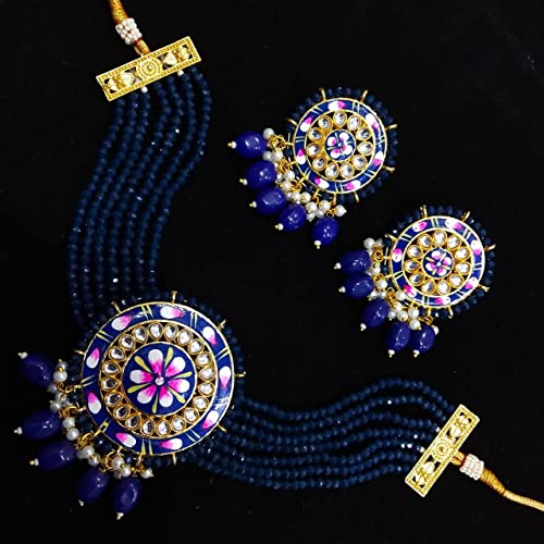 This Jewelry Set offers a wide range of wedding jewelry. It is every woman?s essential to have a beautiful jewelry set all the time since they are so elegant and eye-catching for special wedding and festive occasions. The array of jewelry we present is the perfect blend of tradition and modernity that looks sophisticated yet conventional. These Choker jewelry sets are suitable for women and girls of all ages.Necklaces are the identity of Indian women and a symbol of grace. They Have Special Importance on Ring Ceremony, Wedding And Festive Time. They Can Also Wear It On Regular Basics. Make Your Moment Memorable with This Range. Ideal Valentine, Birthday, Anniversary gift your loved ones. They complement the overall set and gives you the glamour that you deserve. Earring is very easy to use being lightweight and has a design which makes it very comfortable for use by girls and women. It can be worn over long time periods without any complains of ach and swelling.