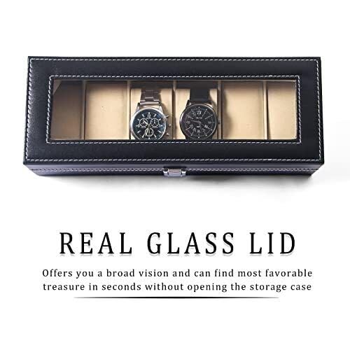 SHREE VALLAV 6 Slot Leather Watch Box | Display Case Watch Organizer Transparent Glass | Jewelry Storage Watch Case | Men’s & Women’s Watch Storage | Large Watch Holders | Watch Display Stand.