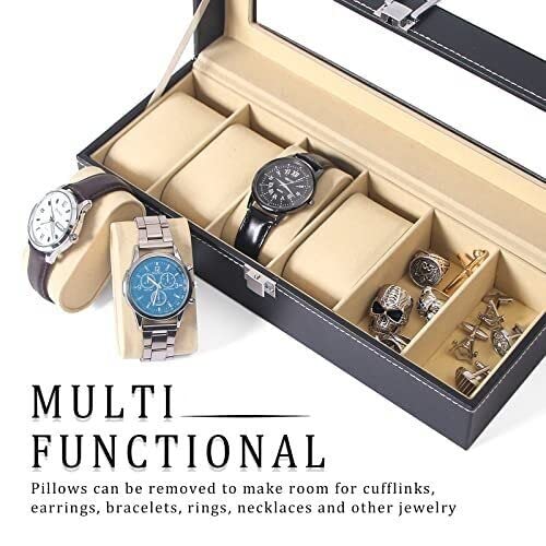 【Multipurpose】 This amazing storage box can be used to store even your intricate and delicate jewellery like bracelets and chains with the stress of tangling. It is 6 removable velvet base pillows fit up to 6 watches.