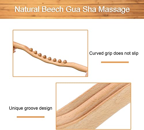 SHREESAMP Gua Sha Massager Wood Therapy Tool Manual 8 Beads Massage Roller Professional Body Relieve Muscle Soreness Stick Wooden Trigger Point Back Legs Neck
