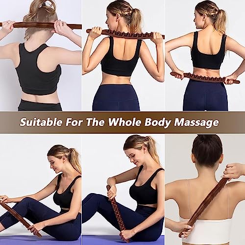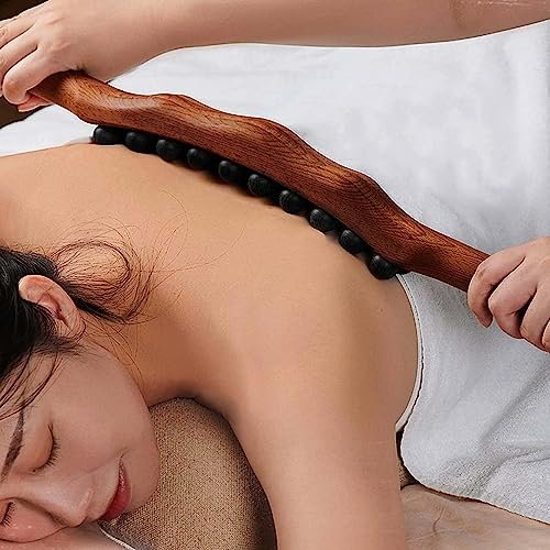 SHREESAMP Wooden Gua Sha Massager Muscle Relaxation Stick Roller Back Legs Guasha Wood Therapy Body Shaping tool Point Neck zik zak line Carbonized 3 Row 31 Beads