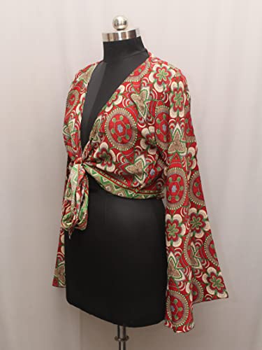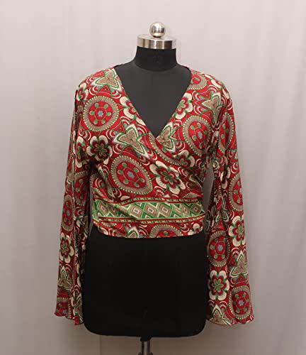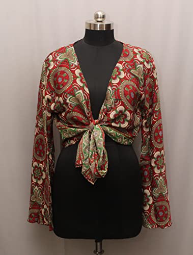 Trending top 2 Way Top Designer Hot Fashion Wear Crop Top Beach Wear Club Wear Bohemian Gypsy Mini Tie Top Summer fashion Sexy Retro Party Flared Long Sleeve Top!! Wear it Multi way hippie Boho ways Tied in front, or tied in back for more coverage and support Our silk tops are designed in India. Sits very comfortable & is wearable in a number of ways as shown. The perfect bohemian feels to add a pop of color to in any season. One size can be adjusted to fit Your shape. It is great for small as well as larger busts when worn in different styles. We Use Material: 70% silk 30% viscose