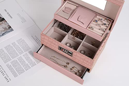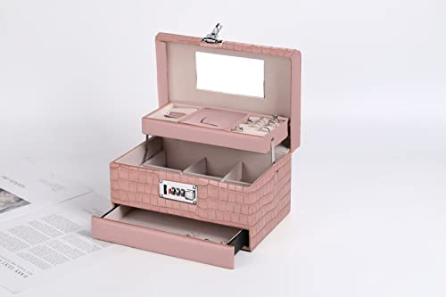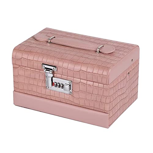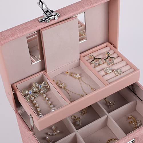 SIBY Jewelry Display Storage Case For Girl Women | 3 Layer Pu Leather Jewellery Travel Organizer For Necklaces Earrings Rings Bracelet | Vanity Bag With T Shaped Lock & Mirror for Travel