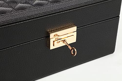 Space Saver & Big Capacity : The medium jewelry storage case can be easily put on your dresser, nightstand, bathroom counter or luggage case, definitely free your space. This 2-layer jewel box with mirror provides you adequate area to display necklace, earrings, rings, bracelets, studs, brooches, watches, keepsakes, etc.