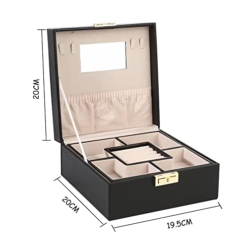 SIBY Pu Leather Jewelry Storage Box With Mirror | Square Shape Mini Jewelry Organizer Case For Necklaces Earrings With Two Layer Travel Gifts for Loved Ones | Makeup Display Holder(Black)