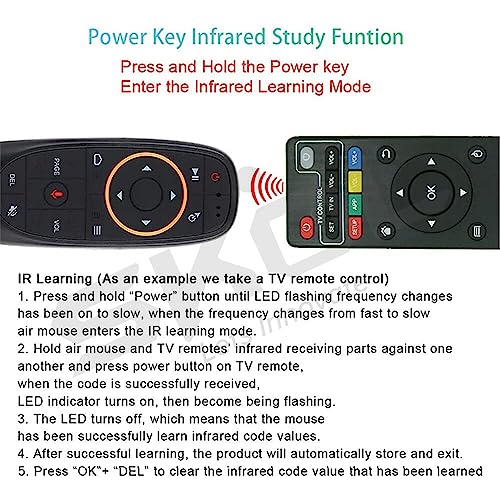 Wireless Air Mouse Remote G10 Model is a versatile and user-friendly remote control designed for use with Smart TV Boxes, PCs, and Android TV Boxes. It features a sleek and ergonomic design that fits comfortably in the hand, making it easy to navigate through your entertainment options. This remote control operates on a 2.4GHz wireless frequency, which provides a reliable and responsive connection. It also has an IR learning capability, allowing you to program the remote to control other devices in your home entertainment system. One of the standout features of the G10 Model is its voice control capability. With just a simple voice command, you can search for movies, TV shows, and other content, making it a convenient and effortless way to navigate your entertainment options. The remote control is also equipped with an air mouse feature, which allows you to control the cursor on your screen with natural hand movements. This makes it easy to navigate through menus, select options, and browse the web.