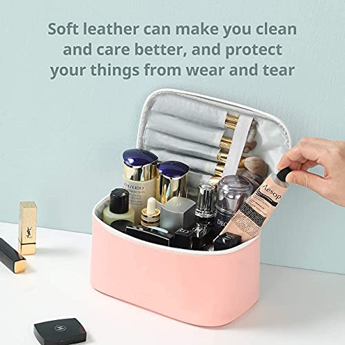 This makeup cosmetic bag made of water repellent and soft leather fabric, has good wear resistance and durability.; Durable metal zippers can be used repeatedly and not easily damaged.
