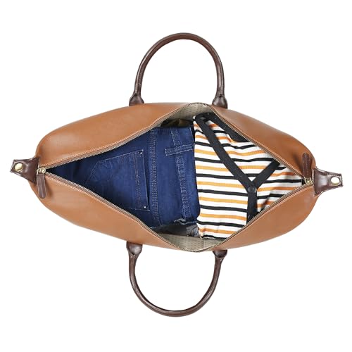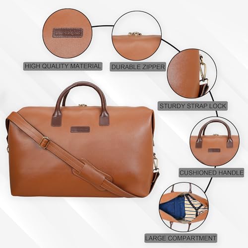 Smart Stylez Voyager Duffle Bag for Travel – Vegan Leather, Ideal Cabin Bag for Flight -Men and Women’s Weekender Travel Bag for Luggage -Spacious, Fashionable, Sturdy(Tan)