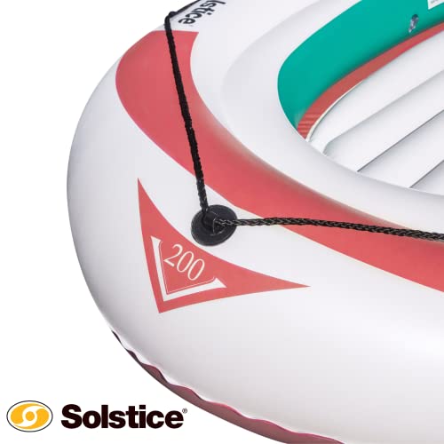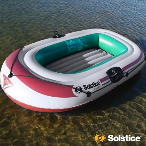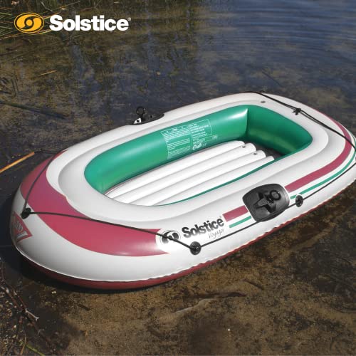 Head to the closest watering hole for some fun in the sun with the Voyager Series SportBoat from Solstice featuring four chamber double hull construction and made with heavy-duty PVC for enjoyment season after season.FEATURES: Heavy-duty PVC construction 2 Person capacity up to 360 lbs Swivel oar locks Boston valve 4 Chamber Double hull (DIN chamber) construction Pump and oars included