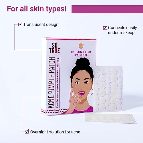 Sotrue Acne Pimple Patches For Face | For Active Surface Acne | Hydrocolloid Waterproof Patches | Absorbs Pimple Overnight, Reduces Excess Oil | Suits All Skin Types (36 Patches)