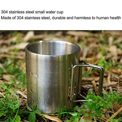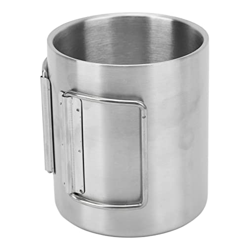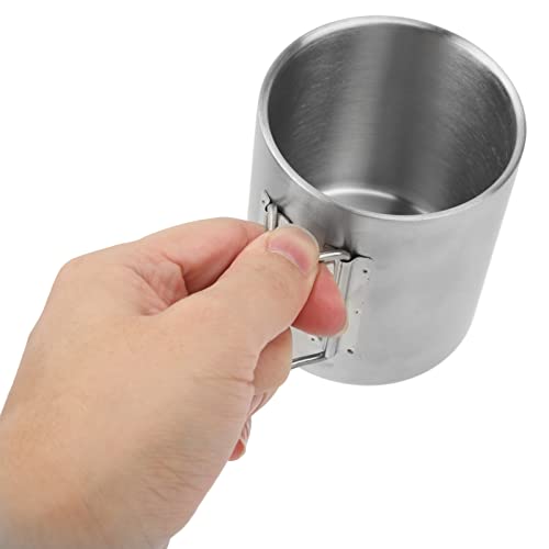 Camping Cup with Folding Handle : The handle of camping cup can be folded to prevent scalding without hurting your hands. It can be folded up when stored for convenient storage and carrying.