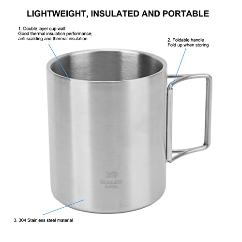 Stainless Steel Camping Coffee Mug, Double Wall Design Camping Cup for Camp Survival Cooking Gear, Portable Hiking and Backpacking Mug