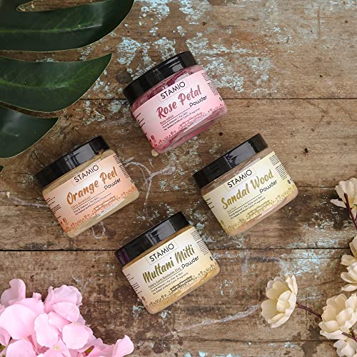 STAMIO Orange Peel, Sandalwood Face Pack, Multani Mitti and Rose Petals Powder Combo for Skin Care, Mask, DIY | Men & Women | In Jar – 330gm (100gm X 2 + 80gm + 50gm)