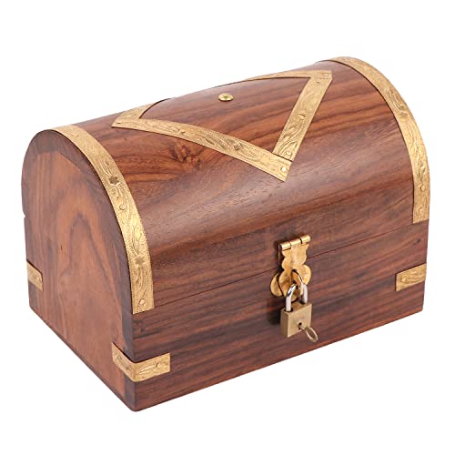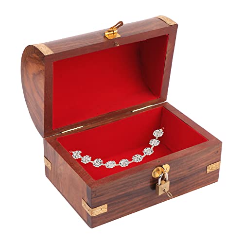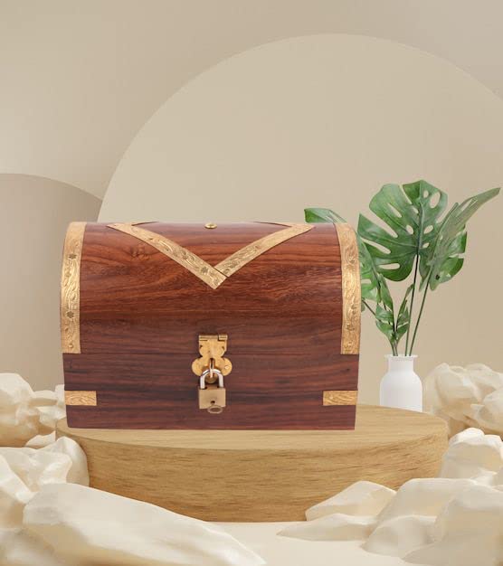 STAR CRAFT Wooden jewellery Box Crafted By Pure Sheesham Rosewood with Beauiful Brass Work Jawellery Box Size (L-17, W-11, H-11, CM. Colour-Brown) Jewellery Box Gift For, Girls (Brown 2)
