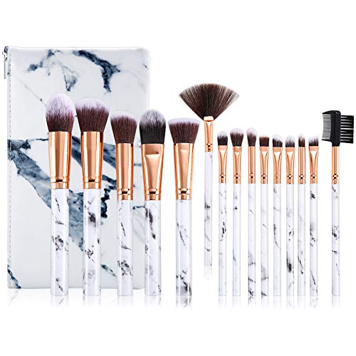 15 pieces marble make up brushes suitable for a wide range of products like powders, creams, and liquids to mineral makeup, contouring, shading, highlighter, and shimmer.
