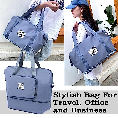 Storite Nylon 40 Cm Imported Travel Duffle Bag, Expandable Folding Travel Bag for Women, Lightweight Waterproof Carry Weekender Overnight Luggage Bag (Blue, 40 x 23 x 45 Cm)
