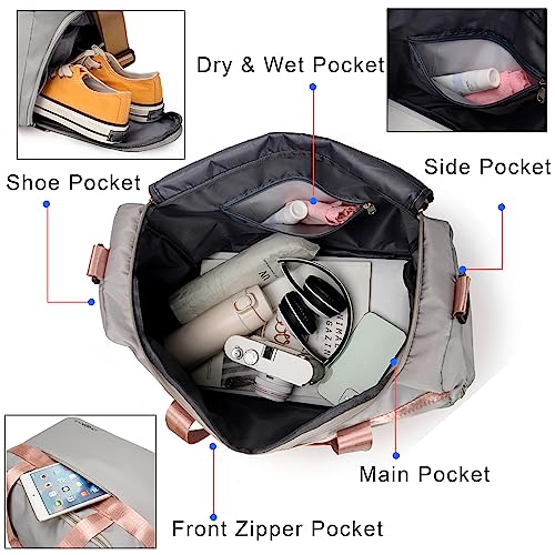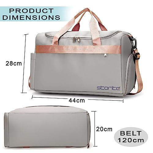 Storite Nylon 44 Cm Imported Travel Duffle Bag for Women Sports Gym Shoulder Bag with Shoe Compartment Weekender Overnight Travel Luggage Bag (Grey, 44x28x20 Cm)