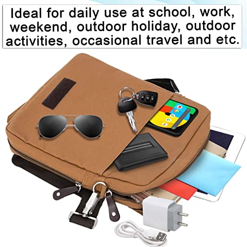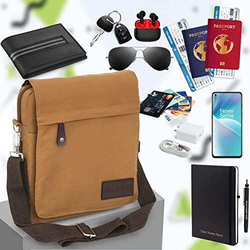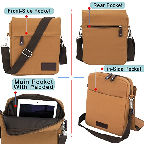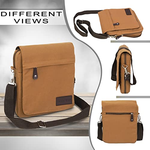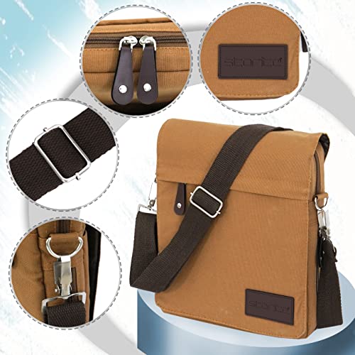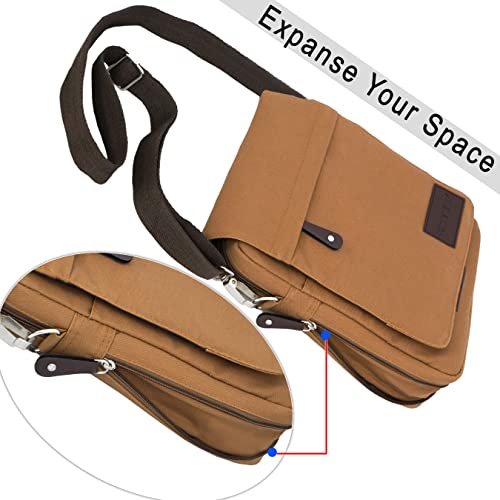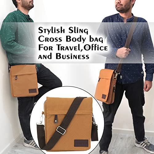 Storite Vertical Canvas Expandable Sling Cross Body Travel Office Messenger One Side Shoulder Bag for Men & Women (Brown with Brown Strap)