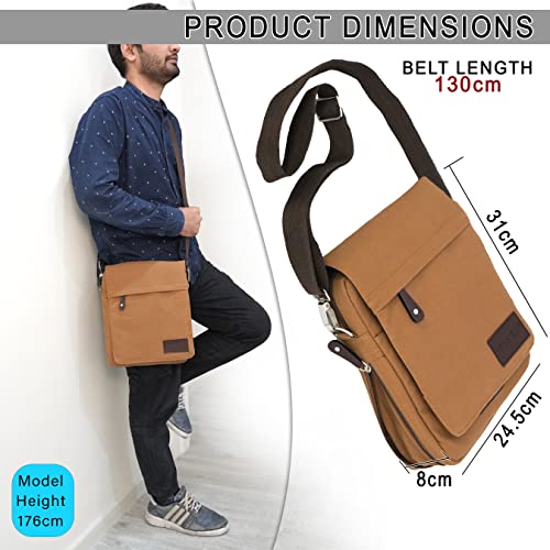 Storite Vertical Expandable Padded Canvas Sling Cross Body Travel Office Business Messenger One Side Shoulder Bag for Men & Women (31x8x24.5 cm, Brown)