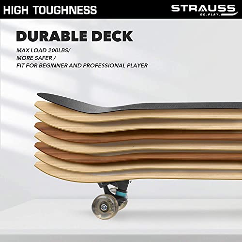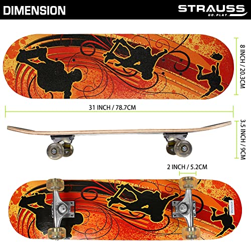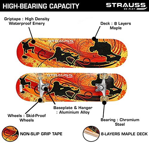 Strauss Bronx YB Lightweight Skateboard with Unique Graphics| 31″ X 8″ Size with 8 Layer Maple Deck with High Density & Non-Slip Waterproof Grip Tape | Comes with 2 inch PU wheels for a Smooth Ride | Suitable for All Age Groups