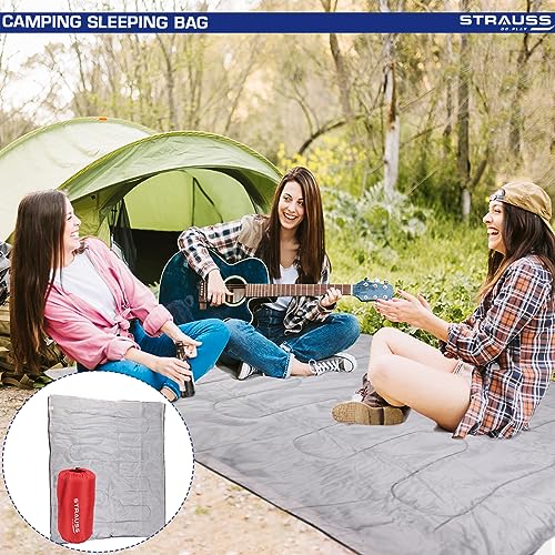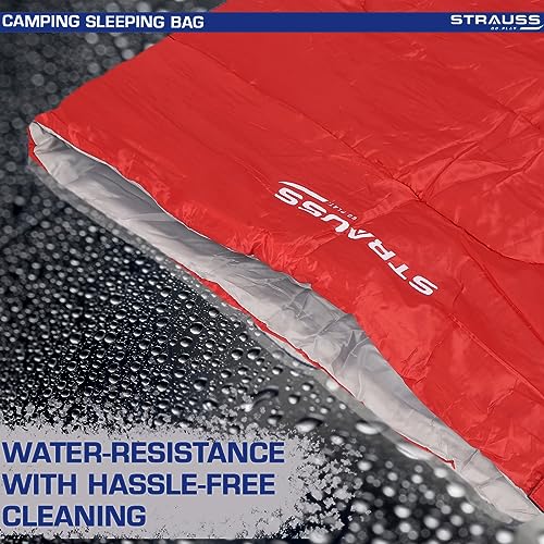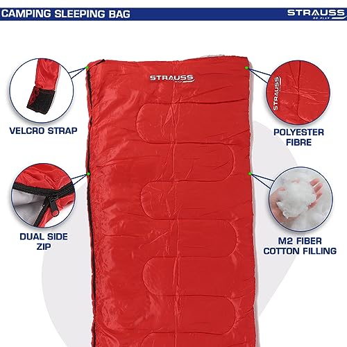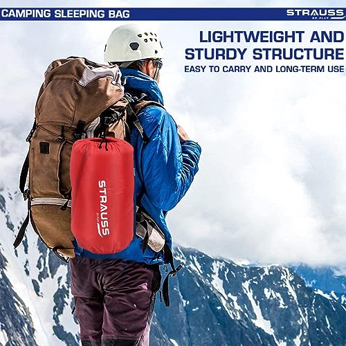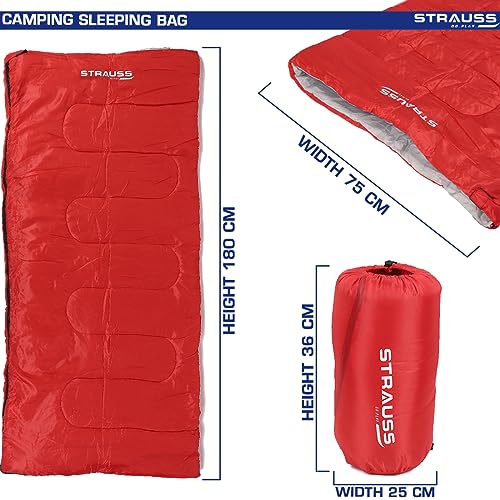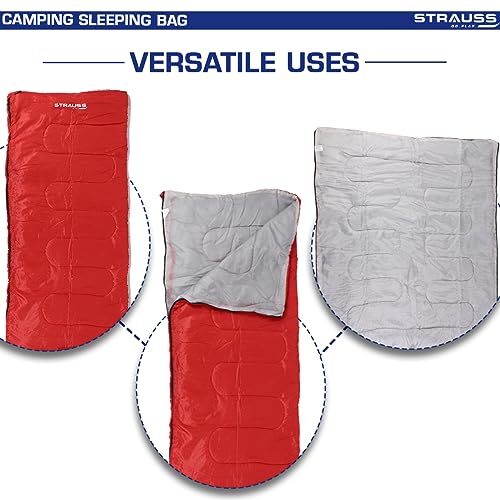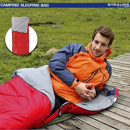STRAUSS Camping Sleeping Bag | Can Be Used in Summer, Spring and Winter | Lightweight and Portable | Ideal for Travel Camping Hiking and Trekking | for Adults & Kids,(Red)