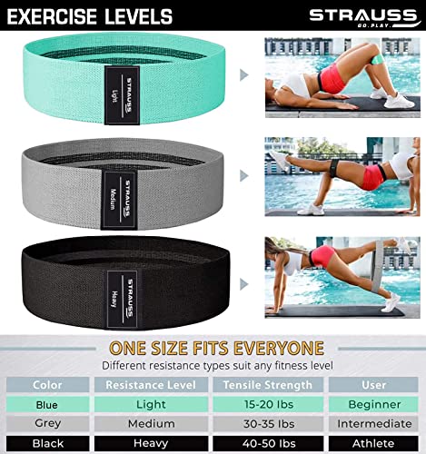 Strauss Fabric Resistance Bands | Resistance Loop Bands for Exercise, and Workout | Hip Band for Stretching, Squats, Legs, Thigh, Glutes and Butt Toning Workout | Ideal for Men & Women (Set of 3)