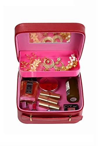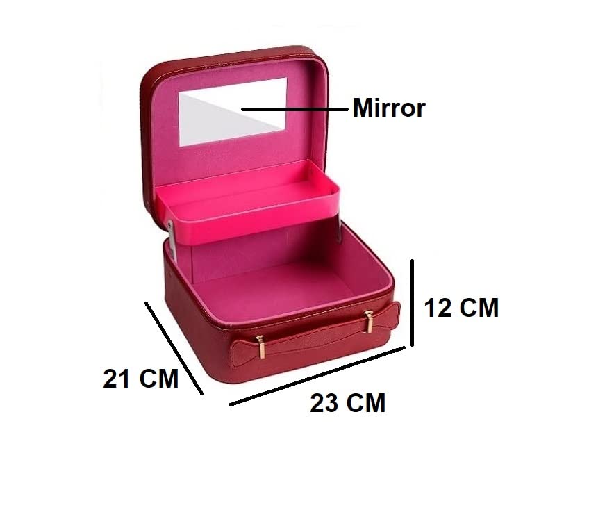 Material : This Vanity case , makeup organizer and storage is made of high-quality PU leather fabric, which is waterproof and practical , and has a soft lining for better care of jewelry.Large capacity:: This vanity case adopts a retractable and foldable design, which saves space and can be used for daily cosmetics and jewelry. Cosmetic bag can hold: lotion, facial cleanser, perfume, foundation, makeup brush, lipstick, nail polish, face cream, etc.Design with mirror : The makeup case organizer has a high-definition mirror surface, glass edging, delicate and safe, and the special process mirror surface fits flatly, which is more convenient to use.Multipurpose & Multifunctional: The beauty box makeup organizer is suitable for dressing table storage, travel, cosmetic studio, beauty center. A perfect gift for women,men,couple,friends, holidays.Perfect Gift Option , SIZE & DIMENSIONS : Vanity Box Size : Height : 12cm , Length : 21cm , Width : 23cm Weight : 850gm.