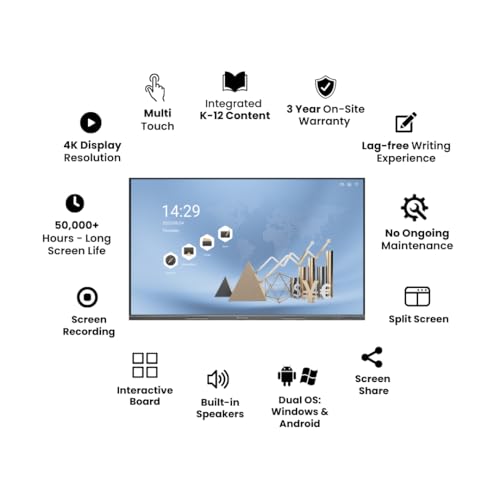 Studynlearn 55 Inch Interactive Flat Panel Multitouch Screen Display 4 GB RAM | 32 GB ROM with K-12 Digital Content (1-Year) – The Best Interactive Panel for Teaching, Schools, Coaching & Offices (55)