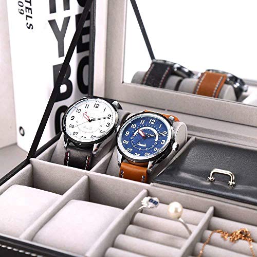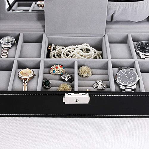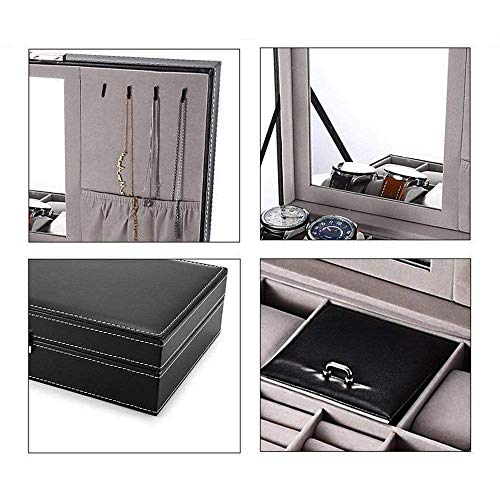 Styleys Faux Leather Wrist Watch Organizer Case 8 Slots With Mirror & Jewlery Organizer, Black (W120)