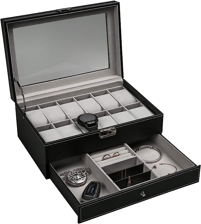LARGE TRANSPARENT LID – Transparent Clear lid protects your watches from dust, and offers you an open view of the displayed watches & jewelry.