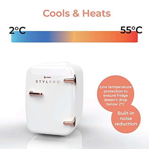 stylPro Mini Beauty Fridge (4 Liter/6 can): AC/DC Portable Thermoelectric Cooler and Warmer for Skincare, Nail Polish, Serums, Creams, Moisturizers, Toners, Sunscreen and Home Items