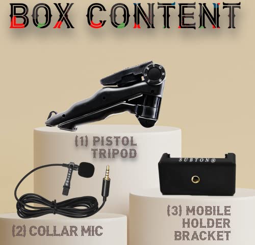 SUBTON® Photography Mobile Holder Mini Tripod Camera Stand with 3.5mm Jack Collar Mic(1.2meter Wire)| for Vlogging, Video Shooting, YouTube etc (Vlogging Tripod+Collar Mic)