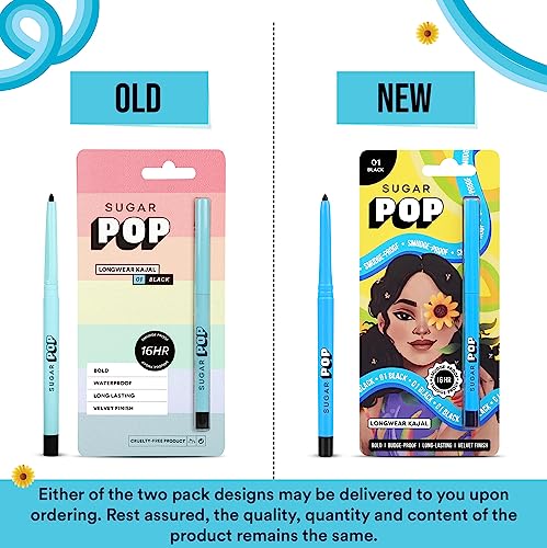 SUGAR POP Longwear Kajal Matte Finish, Intense Dark Kohl Kajal For Women Long Lasting, Smudge Proof, Water Proof, Single Stroke Velvet Finish Lasts Up To 16Hrs – 01 Black