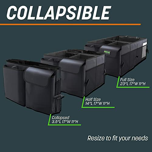 Suzec Car Organizer – Collapsible, Multi-Compartment Automotive SUV Trunk Organizer for Storage w/Adjustable Straps – Truck & Car Accessories for Women and Men – Black