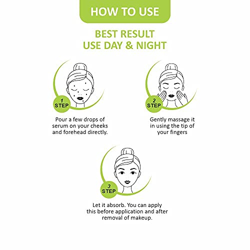Step 1- Pour a few drops of serum on your cheeks and forehead directly. Step 2- Gently massage it in using the tip of your fingers Step 3- Let it absorb. You can apply this before application and after removal of makeup.