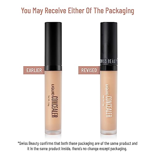 Swiss Beauty Liquid Light Weight Concealer With Full Coverage |Easily Blendable Concealer For Face Makeup With Matte Finish | Shade- Light – Moyen, 6G |